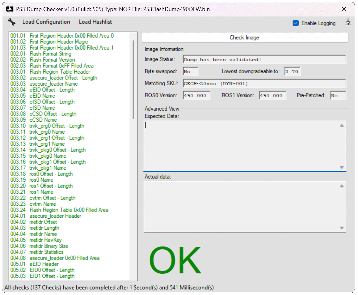 - PS3 Dump Checker: Öffne den Dump über Check Image und wähle PS3FlashDump490OFW.bin auf dem USB-Stick aus